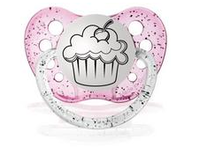 It's true. Maybe because I love eating them I in turn like items depicting them. There are only a few things I like to eat more than Funfetti cupcakes. So Baby Bling Things Boutique has a pretty decent array or pacifiers and pacifier clips, but these are naturally my favorite. The Sweet Cupcake clip is embellished with tiny crystals and is $32.99, and the matching pacifier, not to be outdone, has GLITTER within the plastic for $7.99. Add this to my list please.